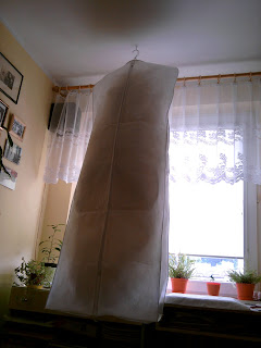 Zaczęto mnie ubierać. Z pomocą mamy i świadkowej ubrałam swoją sukienkę. Sukienkę kupiłam w Madonnie w Gdyni. Model Famosa nr 22. Cena jak na Madonnę dobra, nawet niska :p Zdecydowałam się na nią, ponieważ była lekka, mało miejsca zajmowała i była nie tuzinkowa. Miałam welon, który kupiłam w salonie Elizabeth w Gdyni na Świętojańskiej, o długości 2,5 metra i 80 cm.