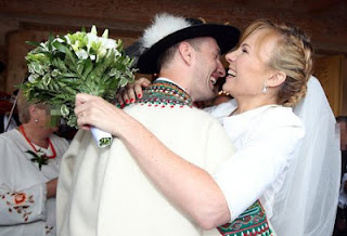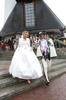Panna młoda wyglądała zjawiskowo w skromnej, ale idealnie dopasowanej do jej figury sukni projektu Violi Piekut. Pan młody natomiast zrezygnował z tradycyjnego garnituru na rzecz stroju podhalańskiego.