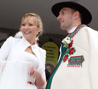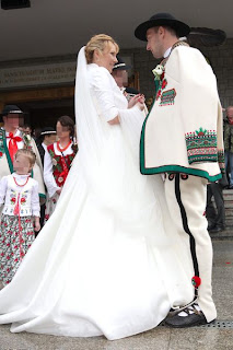 Panna młoda wyglądała zjawiskowo w skromnej, ale idealnie dopasowanej do jej figury sukni projektu Violi Piekut. Pan młody natomiast zrezygnował z tradycyjnego garnituru na rzecz stroju podhalańskiego.