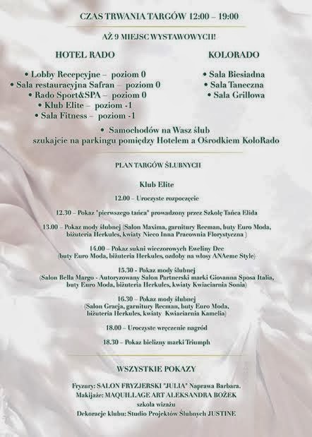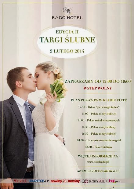 Już po raz drugi, po sukcesie zeszłorocznej imprezy, w hotelu Rado odbędą się targi ślubne. W dziewięciu miejscach będziecie mogli skorzystać z usług branży ślubnej - pokazy mody ślubnej, makijażyści, fryzjerzy.