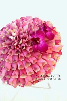 "Niezwykły wygląd osiąga się przez "stworzenie" całości rośliny która nie istnieje w naturze lub jedynie części innych kwiatów. Płatki kwiatu albo elementy zielone są odpowiednio pospinane razem, jeden wewnątrz drugiego, tworząc jedną wielka kompozycję. Uwaga: nie każdy florysta jest doświadczony w tworzeniu takich kompozycji, zatem jeżeli już zdecydujecie się na ten styl, poszukajcie kogoś, kto już robił takie bukiety.