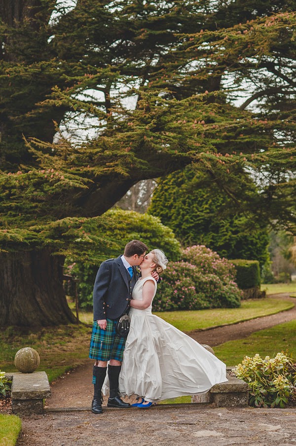 Chciałam Wam pokazać pewien ślub, który miał miejsce 13 kwietnia 2013 w Errol Park w Perthshire, Szkocja.Ślub i wesele odbyło się w klimacie wiejskim z polnymi kwiatami jako dekoracjami i z druhnami w kwiecistych sukienkach. Pomysł, żeby dodatkowym kolorem był chaber, był moim zdaniem strzałem w dziesiątkę.