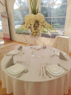 Po dłuższej chwili, po kontemplacji ciszy, spokoju oraz słońca udaliśmy się do namiotu. A tam czekała nas druga niespodzianka. Pięknie przybrane i udekorowane stoły. Każdy stół był w innym stylu, był zimowy, morski, letni. Jaki tylko chcecie. I nagle, poczułam ochotę na ślub zimowy, w styczniu bądź w lutym, kiedy jezioro jest zamarznięte. Namiot pomieści nawet do 250 osób, więc jeśli szukacie miejsca na dosyć spore wesele, to będzie idealne miejsce. Namiot będzie także idealnym miejscem, bo po odsunięciu kotar, oczom ukazuje się widok na jezioro.