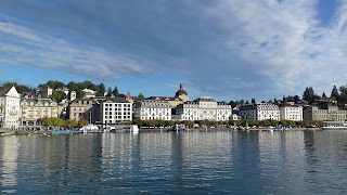 widok na Lucernę z promu płynącego po jeziorze Czterech Kantonów