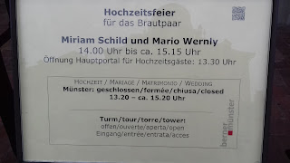 W Bernie w katedrze spotkaliśmy się, tak jak w Islandii, zakaz wchodzenia do środka w momencie, jak trwa ślub. (Co raz bardziej podoba nam się ten pomysł. Ale w Polsce, nie do przyjęcia.) Boczne wejście prowadziło na wieżę widokową, a jedna ze ścian była szklana, więc widziałam akurat wejście pary młodej.