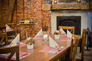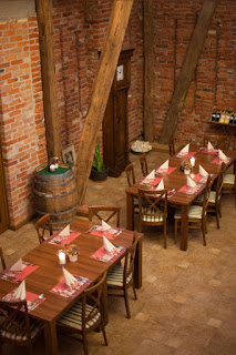 Wystrój jest bardzo ciekawy, to połączenie starego z nowym. Budynki gospodarstwa rolnego z początku XX wieku zaadaptowano na salę oraz na pokoje gościnne. Dobrane krzesła, dobrane obrusy tworzą klimat, w którym miło spędza się czas. Drewniane belki, które widać, nadgryzł ząb czasu są ciekawe - ocieplają wnętrze i ściany ze strych cegieł.